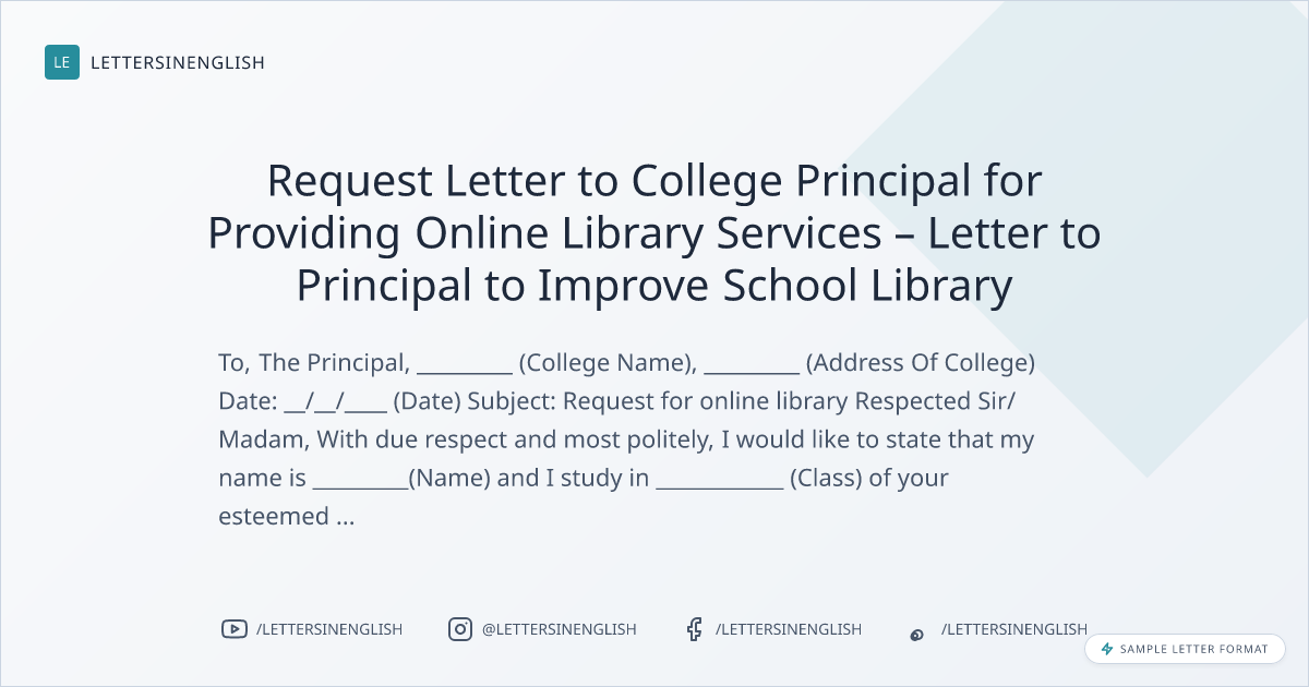Request Letter to College Principal for Providing Online Library Services – Letter to Principal to Improve School Library