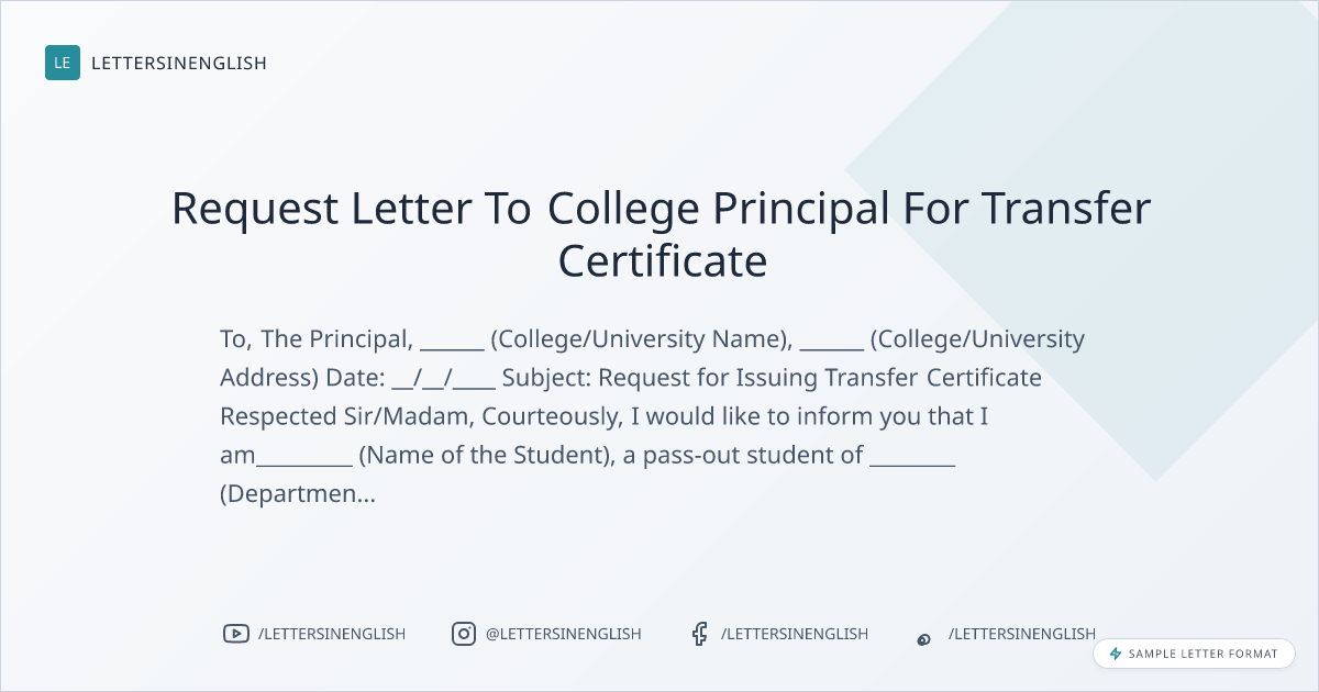 Therefore, I request you to issue a transfer certificate in my name so that I can enroll in the master’s course.
