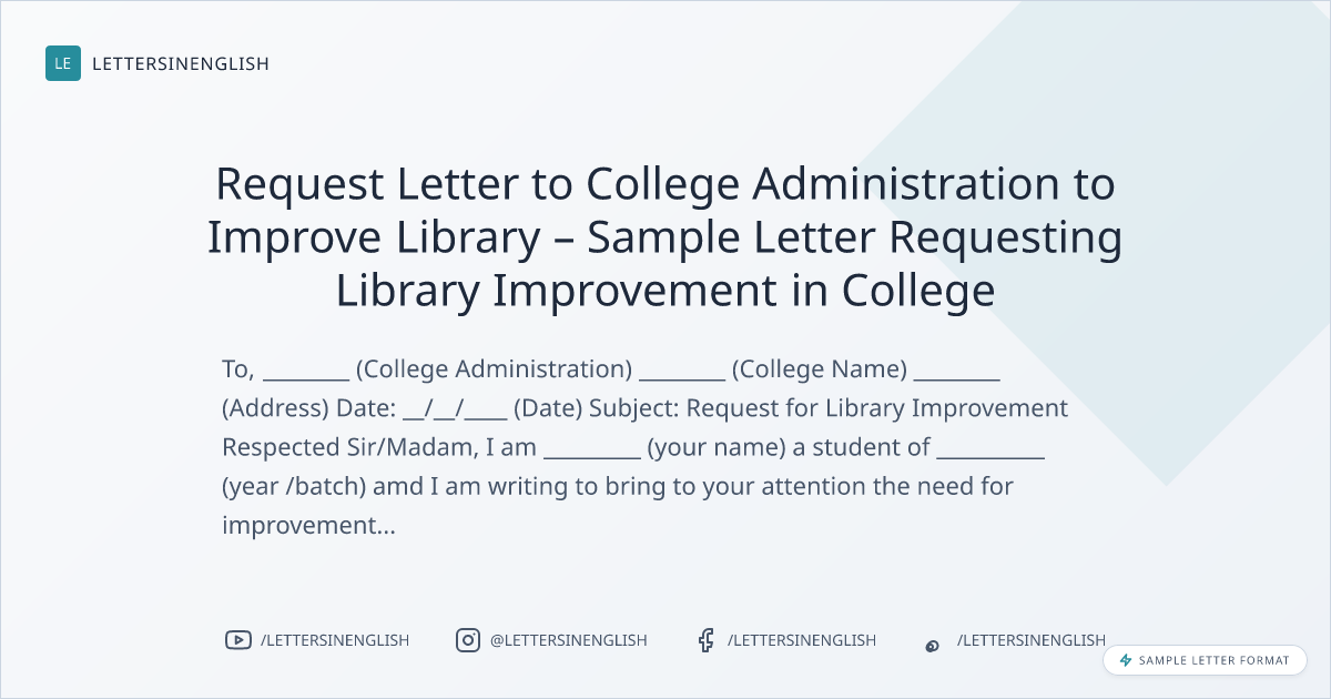 Request Letter to College Administration to Improve Library – Sample Letter Requesting Library Improvement in College