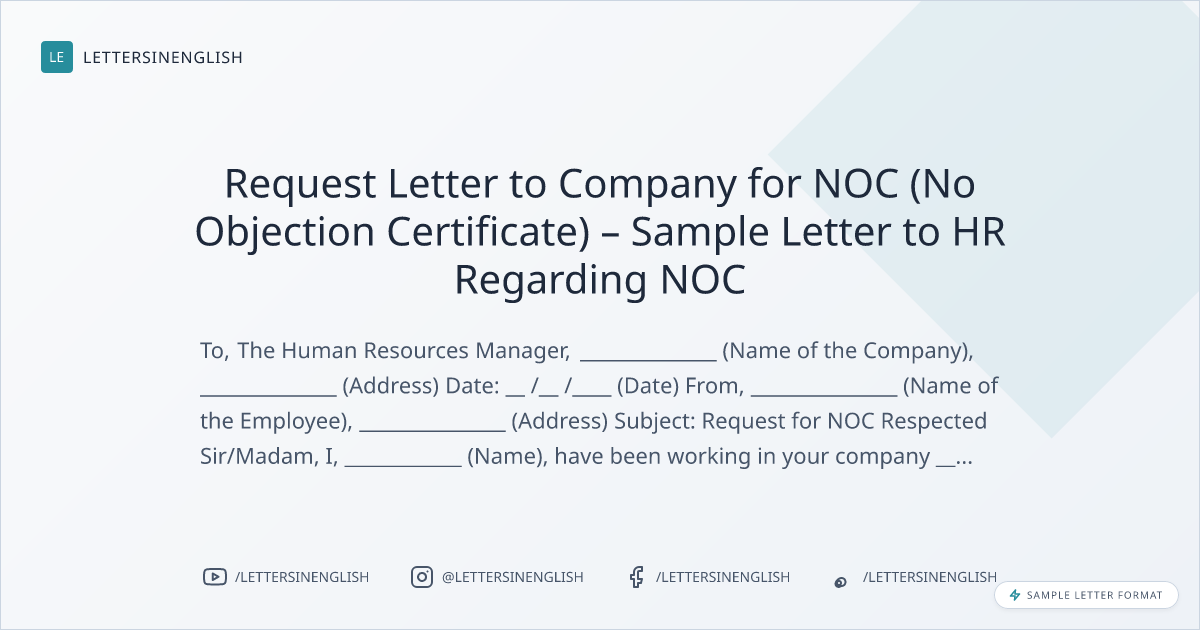Sample Request Letter to Company for NOC (No Objection Certificate)