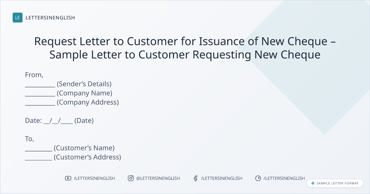 Request Letter to Customer for Issuance of New Cheque – Sample Letter to Customer Requesting New Cheque