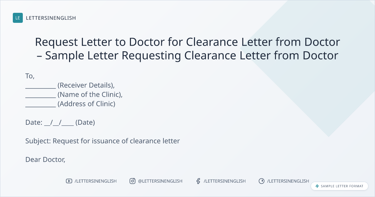 Request Letter to Doctor for Clearance Letter from Doctor – Sample Letter Requesting Clearance Letter from Doctor