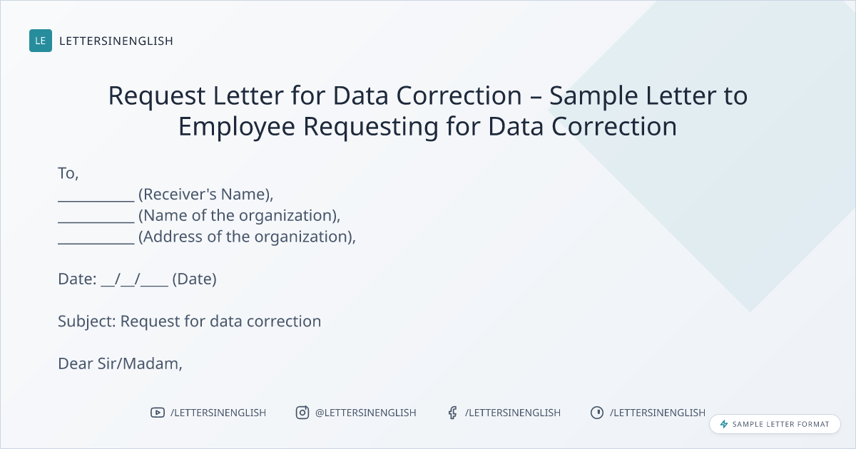 Request Letter for Data Correction – Sample Letter to Employee Requesting for Data Correction