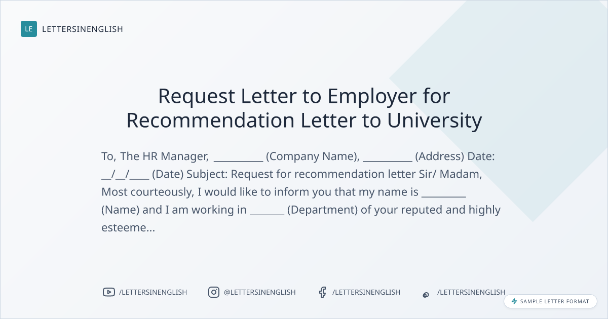 Request Letter to Employer for Recommendation Letter to University