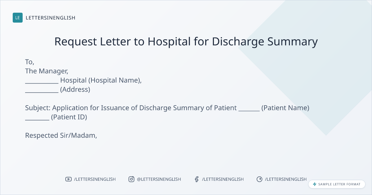 Request Letter to Hospital for Discharge Summary