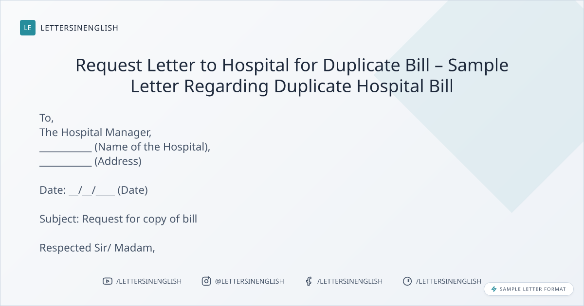 Request Letter to Hospital for Duplicate Bill – Sample Letter Regarding Duplicate Hospital Bill