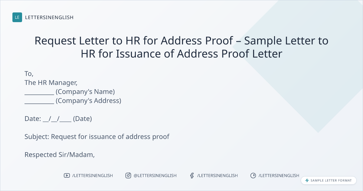 Request Letter to HR for Address Proof – Sample Letter to HR for Issuance of Address Proof Letter