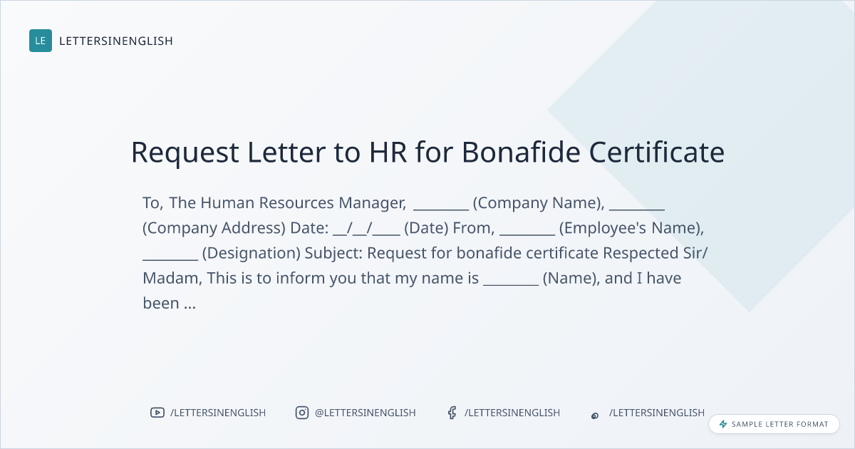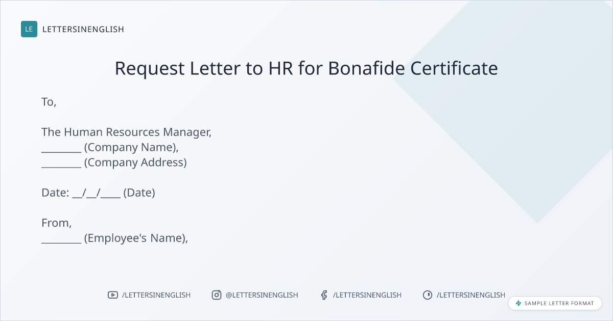Request Letter to HR for Bonafide Certificate