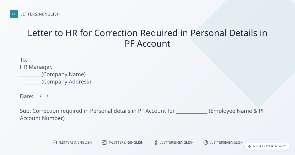 Letter to HR for Correction Required in Personal Details in PF Account