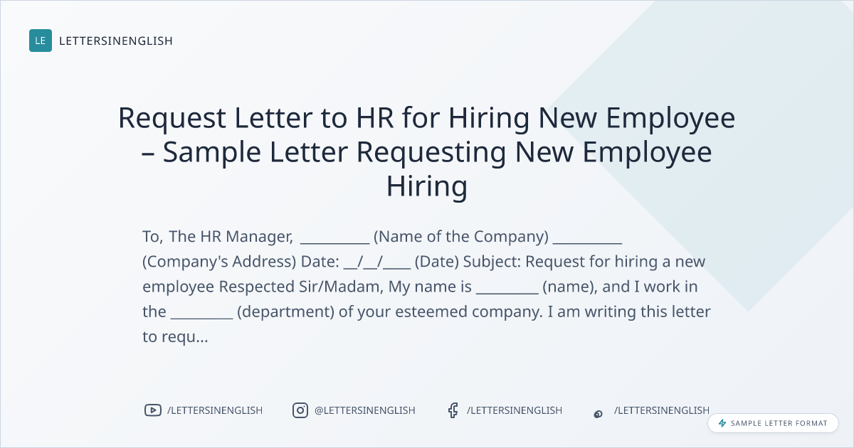 Request Letter to HR for Hiring New Employee – Sample Letter Requesting New Employee Hiring