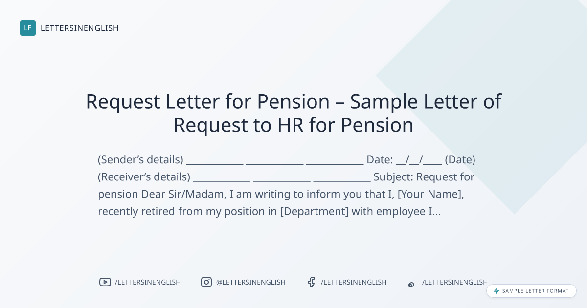 Request Letter for Pension – Sample Letter of Request to HR for Pension