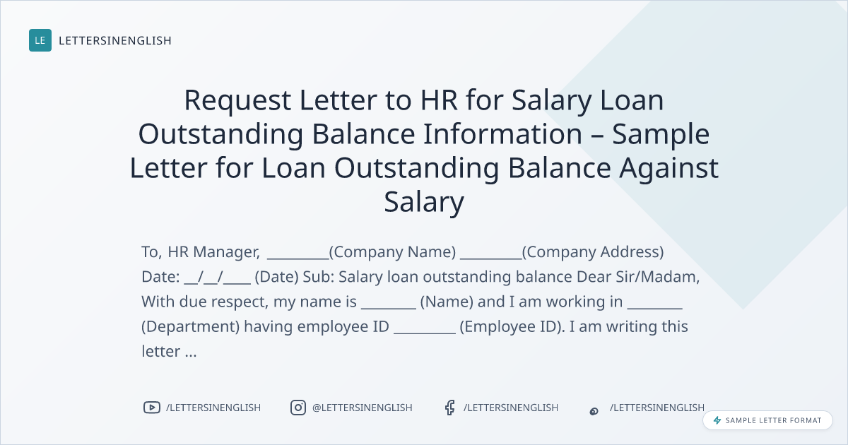 Request Letter to HR for Salary Loan Outstanding Balance Information – Sample Letter for Loan Outstanding Balance Against Salary