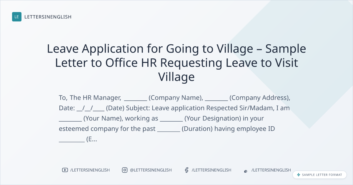 Leave Application for Going to Village – Sample Letter to Office HR Requesting Leave to Visit Village