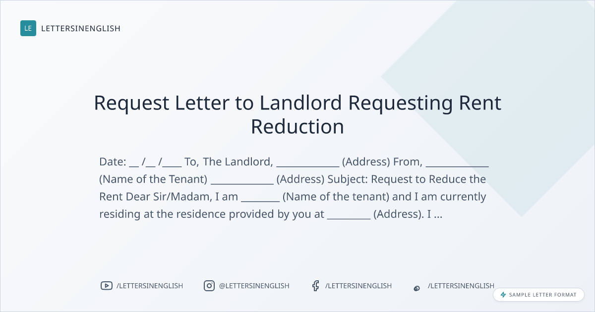 Request Letter to Landlord for Rent Reduction