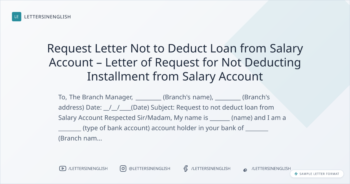 Request Letter Not to Deduct Loan from Salary Account – Letter of Request for Not Deducting Installment from Salary Account