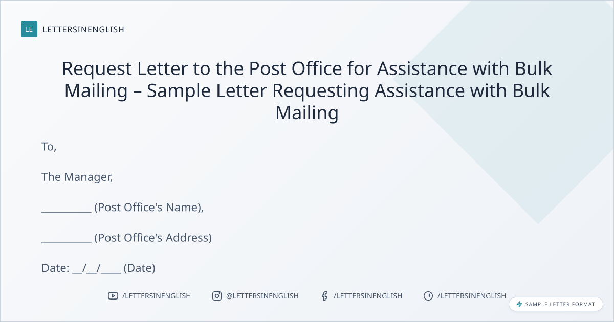 Request Letter to the Post Office for Assistance with Bulk Mailing – Sample Letter Requesting Assistance with Bulk Mailing