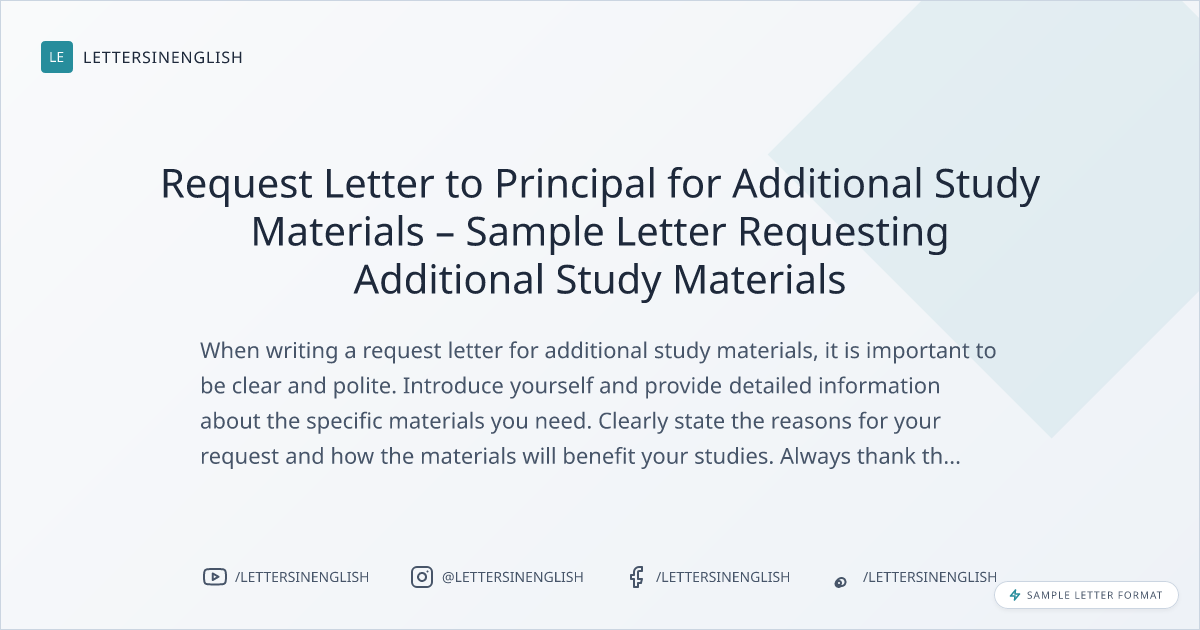 Sample Letter: Request Letter to Principal for Additional Study Materials