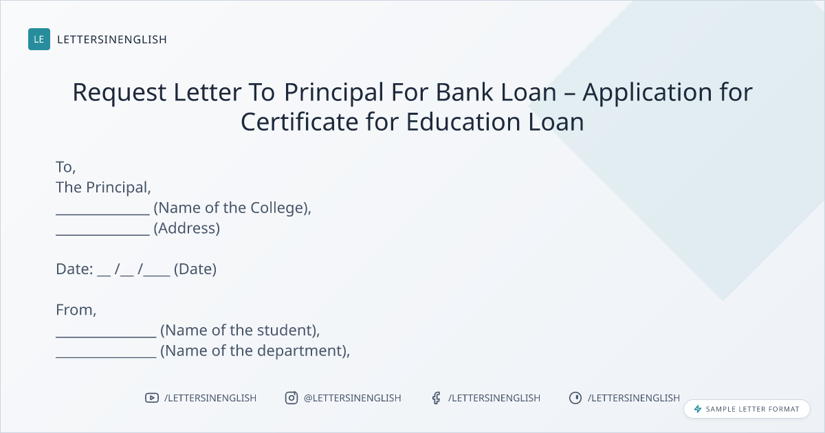 Request Letter To Principal For Bank Loan – Application for Certificate for Education Loan