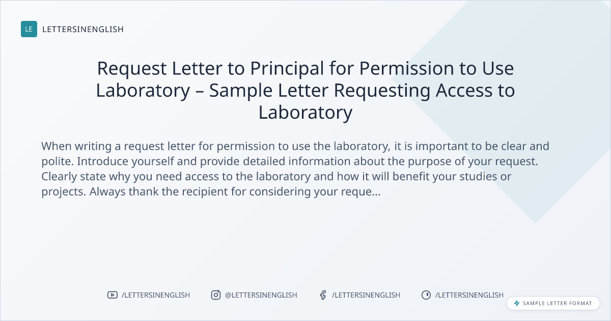 Sample Letter: Request Letter to Principal for Permission to Use Laboratory