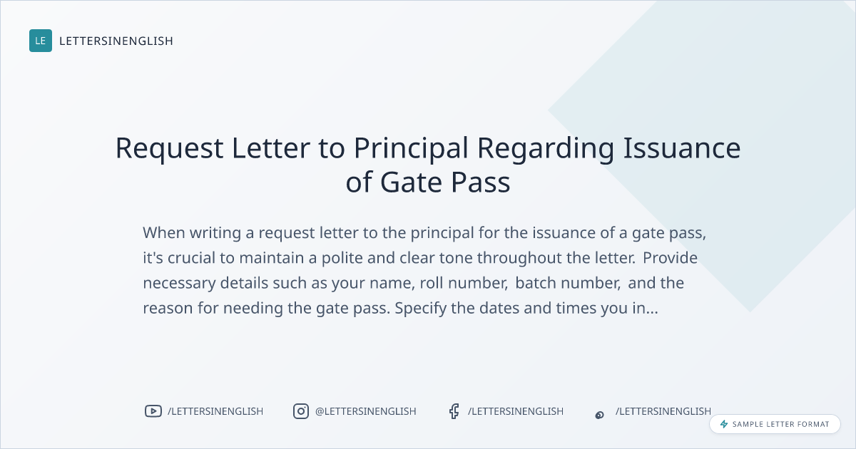 Request Letter to Principal Regarding Issuance of Gate Pass