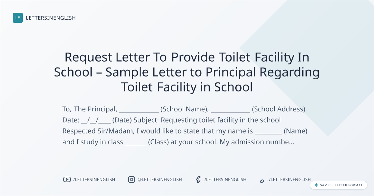 Request Letter To Provide Toilet Facility In School – Sample Letter to Principal Regarding Toilet Facility in School