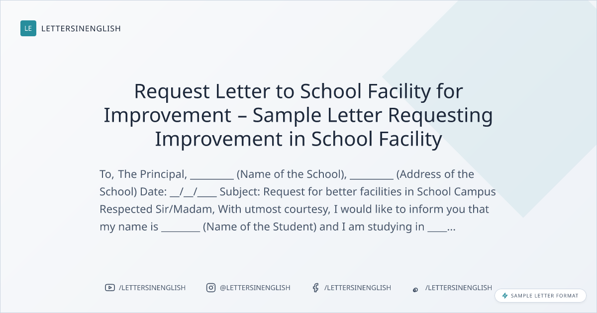 Request Letter to School Facility for Improvement – Sample Letter Requesting Improvement in School Facility