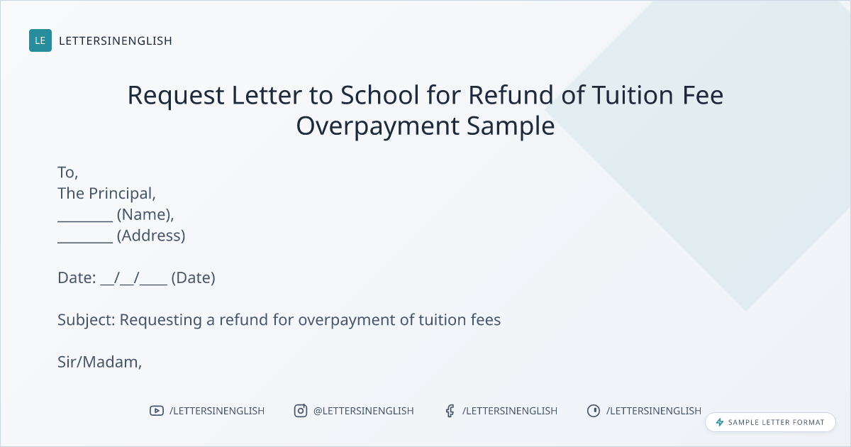 Request Letter to School for Refund of Tuition Fee Overpayment Sample
