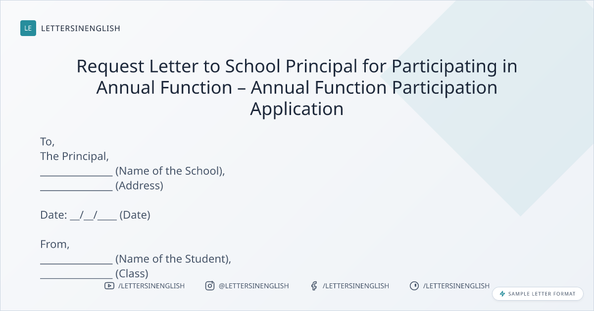 Request Letter to School Principal for Participating in Annual Function – Annual Function Participation Application