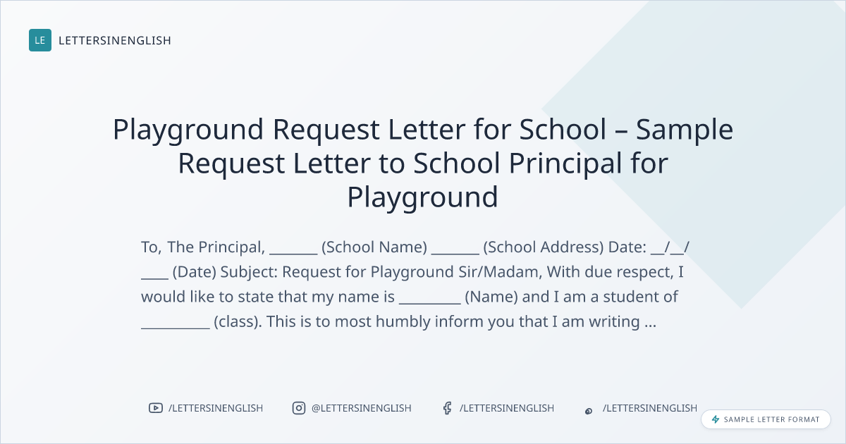 Playground Request Letter for School – Sample Request Letter to School Principal for Playground