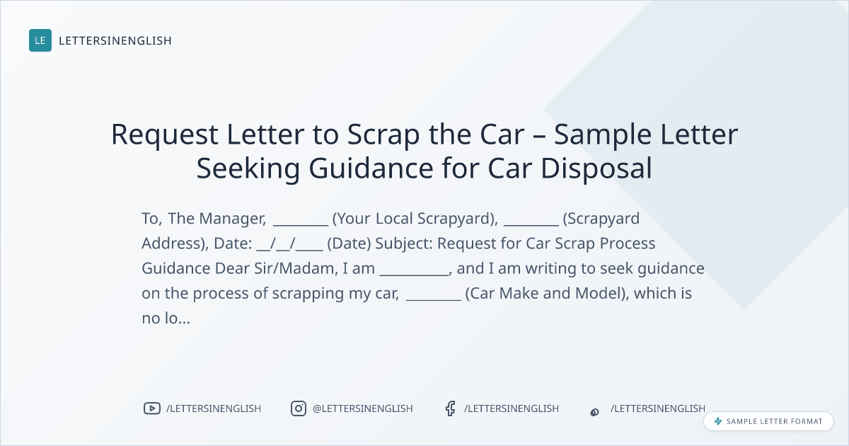 Request Letter to Scrap the Car – Sample Letter Seeking Guidance for Car Disposal