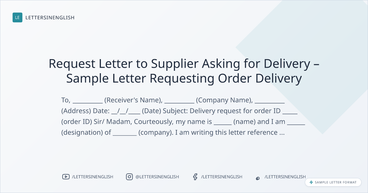 Request Letter to Supplier Asking for Delivery – Sample Letter Requesting Order Delivery