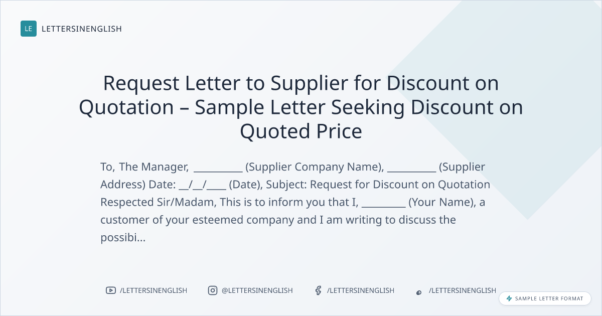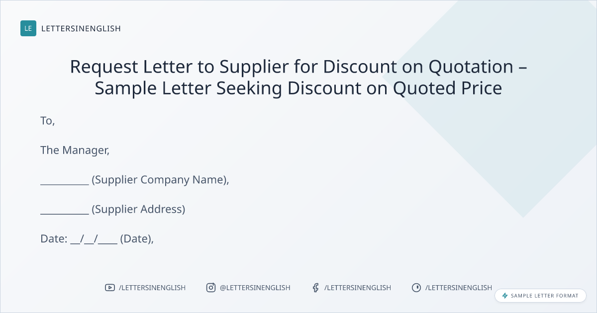 Request Letter to Supplier for Discount on Quotation – Sample Letter Seeking Discount on Quoted Price