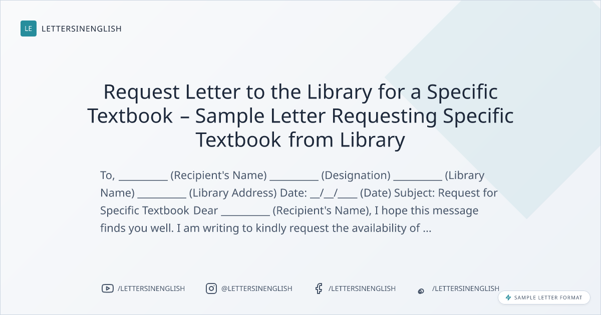 Request Letter to the Library for a Specific Textbook – Sample Letter Requesting Specific Textbook from Library