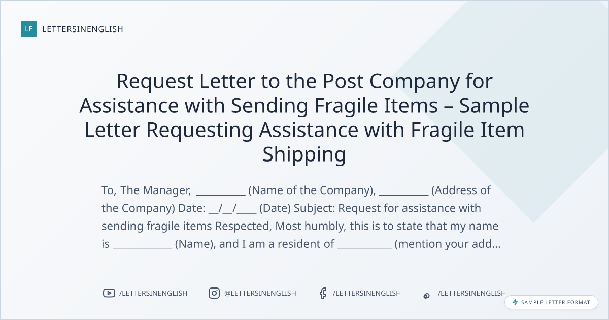 Request Letter to the Post Company for Assistance with Sending Fragile Items – Sample Letter Requesting Assistance with Fragile Item Shipping