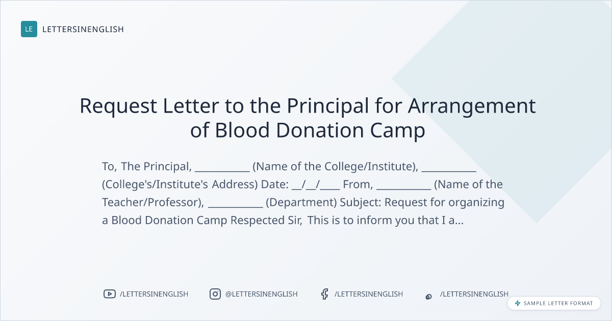 Request Letter to the Principal for Arrangement of Blood Donation Camp