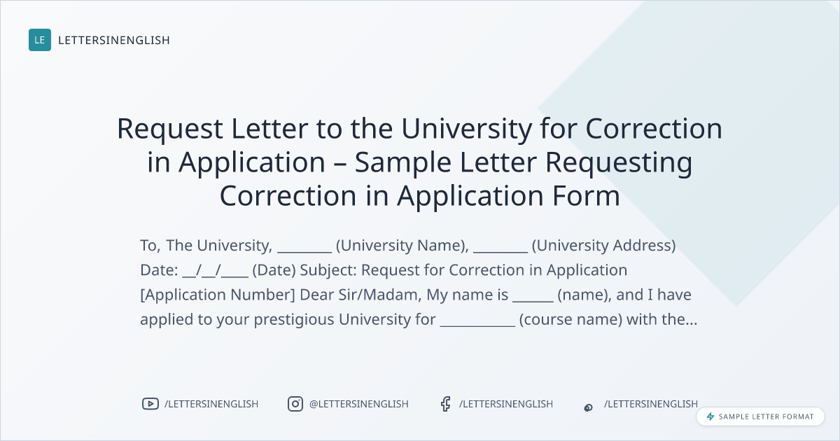 Sample Letter for Correction in Application Form