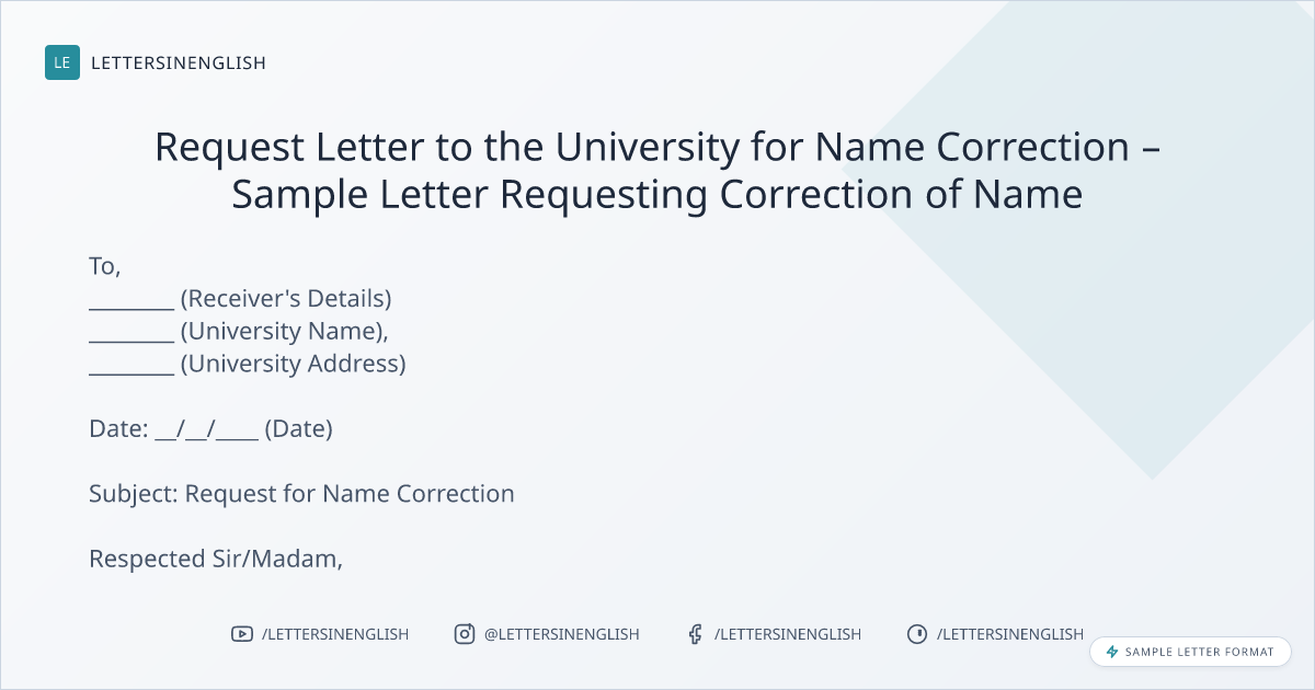 Request Letter to the University for Name Correction – Sample Letter Requesting Correction of Name