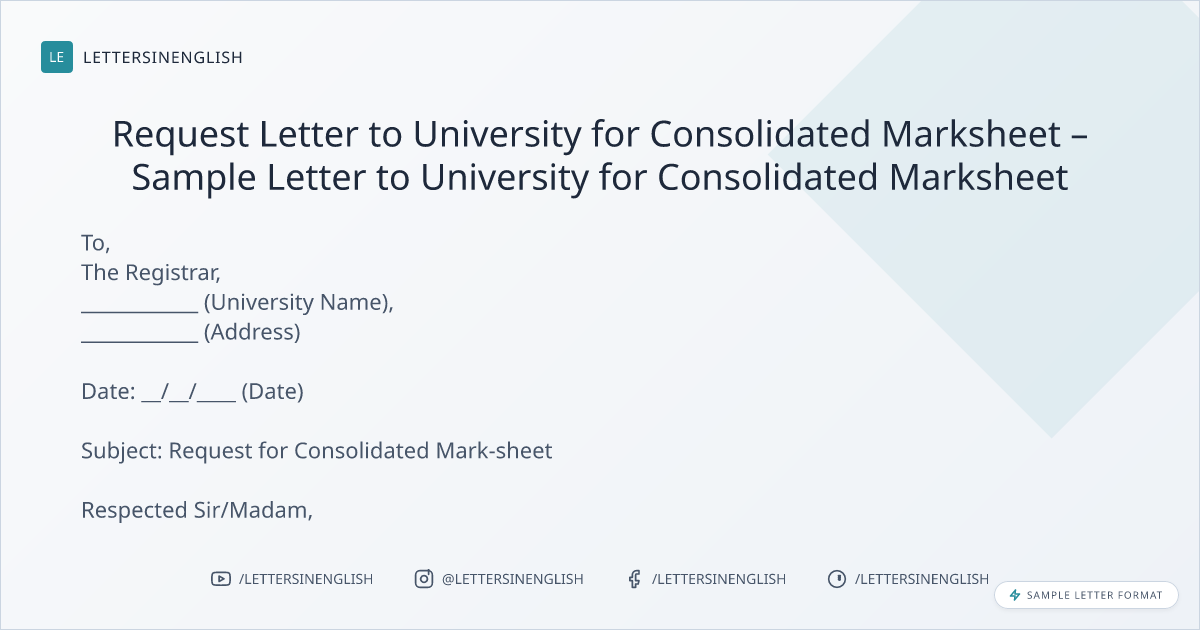 Request Letter to University for Consolidated Marksheet – Sample Letter to University for Consolidated Marksheet