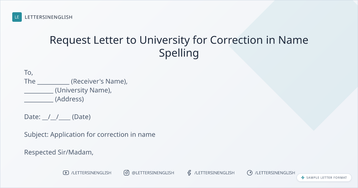 I am hereby enclosing a copy of ___________ (Copy of ID prood/ All other relevant documents). I request you to kindly update my name and correct the spelling in your records. I shall be highly obliged for your kind support.