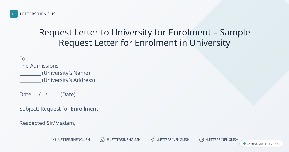 Request Letter to University for Enrolment – Sample Request Letter for Enrolment in University