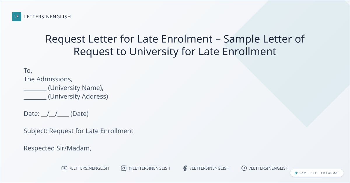 Request Letter for Late Enrolment – Sample Letter of Request to University for Late Enrollment