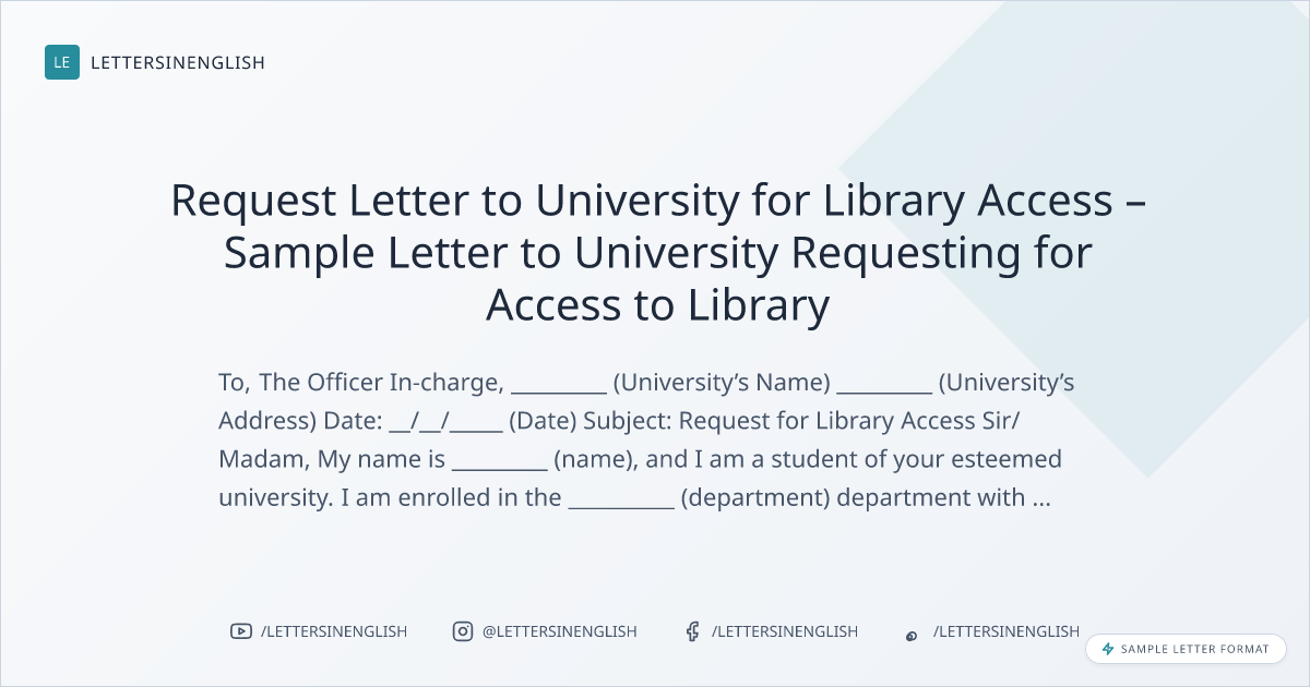 Request Letter to University for Library Access – Sample Letter to University Requesting for Access to Library