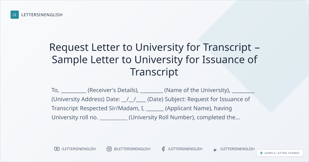 - Sample Letter to University for Issuance of Transcript