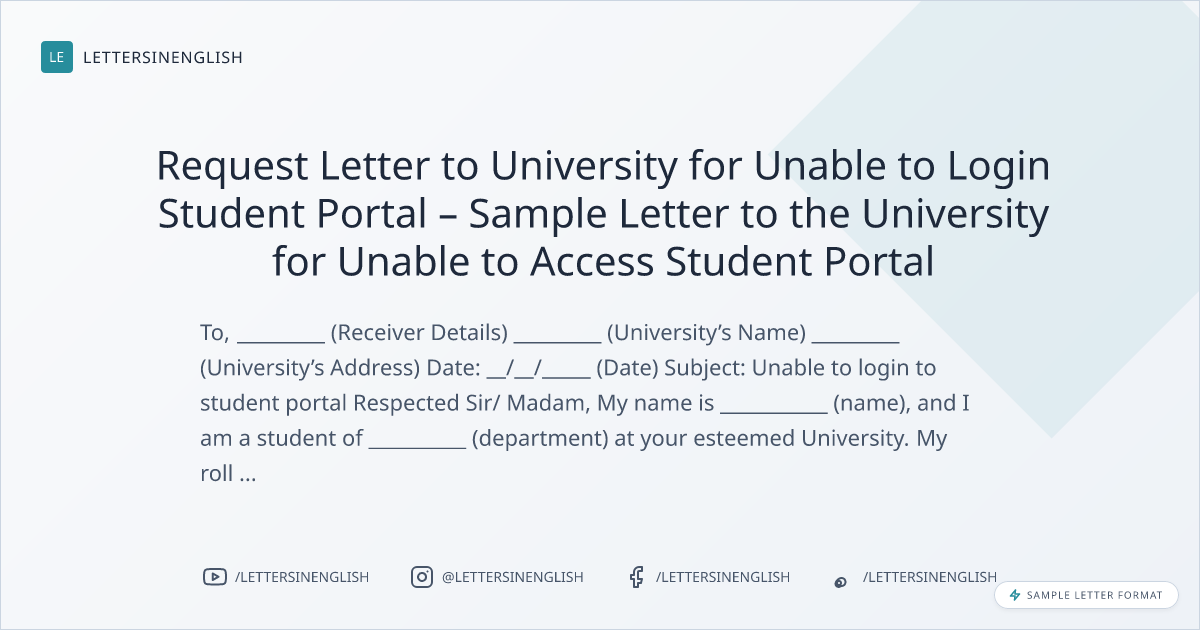 Request Letter to University for Unable to Login Student Portal – Sample Letter to the University for Unable to Access Student Portal