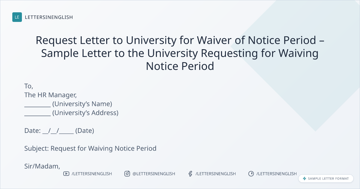 Request Letter to University for Waiver of Notice Period – Sample Letter to the University Requesting for Waiving Notice Period