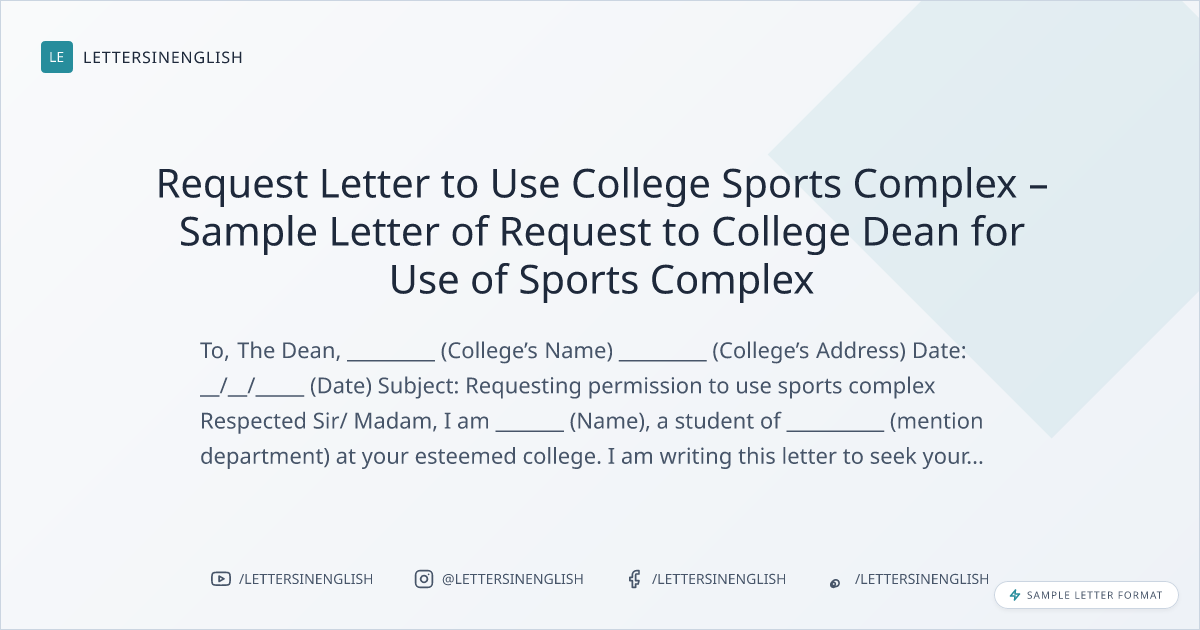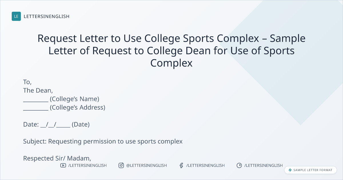 Request Letter to Use College Sports Complex – Sample Letter of Request to College Dean for Use of Sports Complex