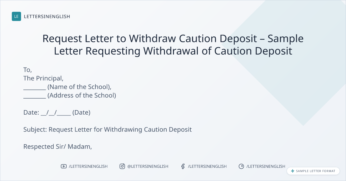 Request Letter to Withdraw Caution Deposit – Sample Letter Requesting Withdrawal of Caution Deposit
