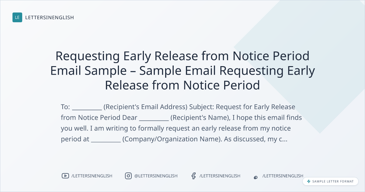 Requesting Early Release from Notice Period Email Sample – Sample Email for Early Exit Approval