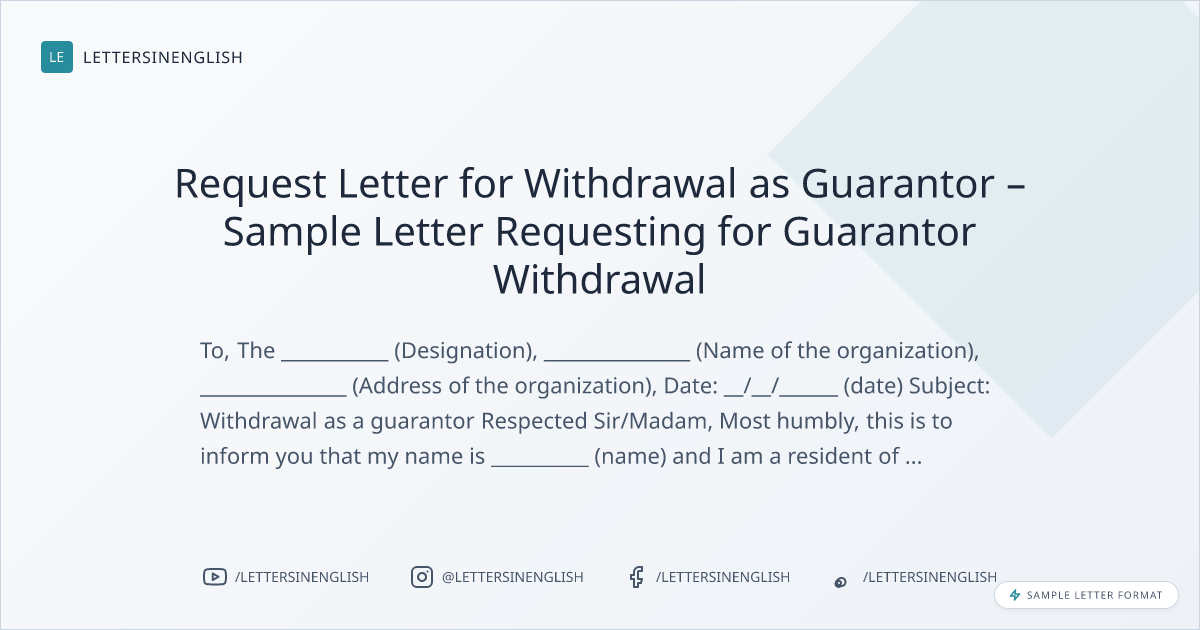 Request Letter for Withdrawal as Guarantor – Sample Letter Requesting for Guarantor Withdrawal