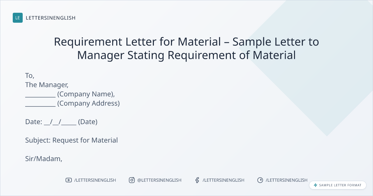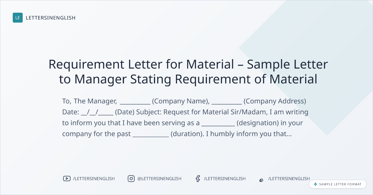 Requirement Letter for Material – Sample Letter to Manager Stating Requirement of Material